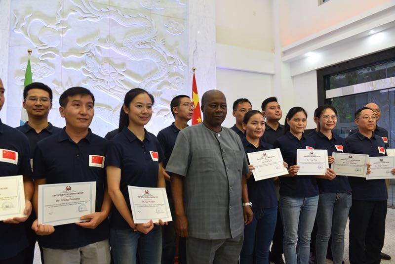 Sierra Leone’s Chief Medical Officer, Dr. Brima Kargbo with the certified Chinese Medical Team
