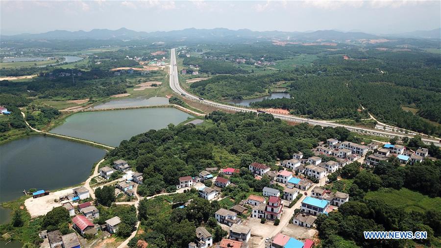 Aerial photo taken on July 10, 2018 shows the scenery of Datang Village of Gongqingcheng City, east China's Jiangxi Province. Local government has made efforts in recent years to overhaul the living environment of villages. (Xinhua/Peng Zhaozhi)