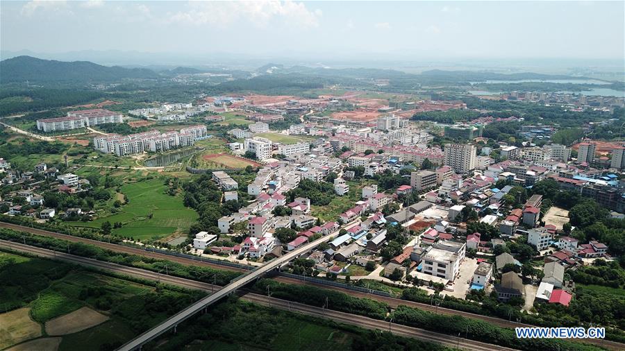 Aerial photo taken on July 10, 2018 shows the scenery of Shuangtang Village of Gongqingcheng City, east China's Jiangxi Province. Local government has made efforts in recent years to overhaul the living environment of villages. (Xinhua/Peng Zhaozhi)