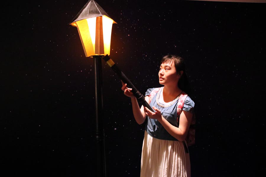A visitor takes a photo with an art installation at the exhibition Reviving the Inner Child in Suzhou, Jiangsu province, June 9, 2018. [Photo by Wang Jiankang/Asianewsphoto]