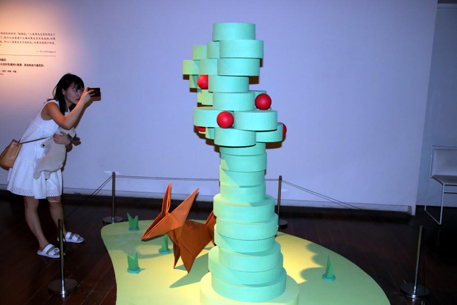 A visitor takes photos of an art installation on display. [Photo by Wang Jiankang/Asianewsphoto]