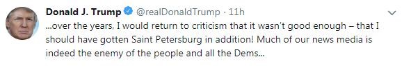 Before his meeting with Russian President Vladimir Putin, US President Donald Trump once again criticized his nation’s leading media outlets, which also have a big presence on major social media platforms such as Twitter. Trump tweeted: “Much of our news media is indeed the enemy of the people.”