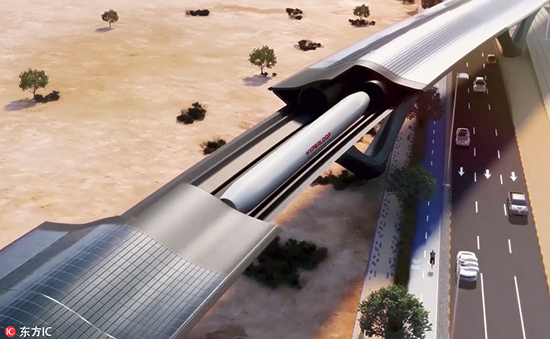 An artist's rendering of a Hyperloop project between Abu Dhabi and Dubai in the United Arab Emirates. [Photo/IC]