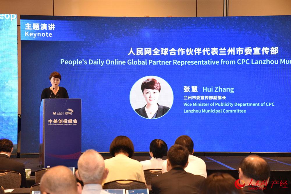 Hui Zhang, Vice Minister of Publicity Department of CPC Lanzhou Municipal Committee gives a speech.
