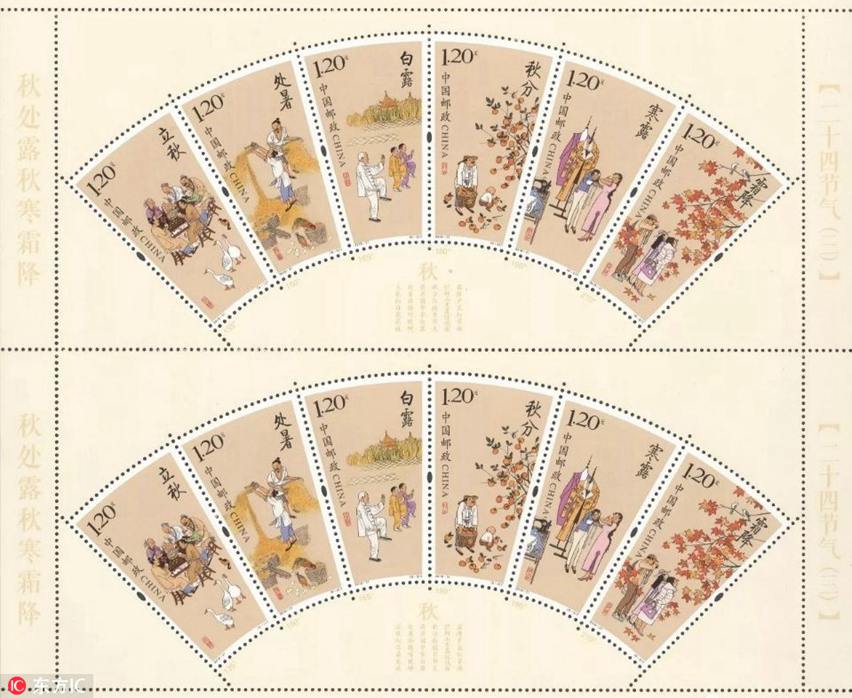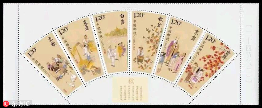 Photo shows special stamps featuring China’s 24 solar terms, to be issued by China Post on August 7, 2018. The special set consists of six 1.2 yuan (around $0.18) stamps, each of which displays a picture themed on one of the 24 solar terms.