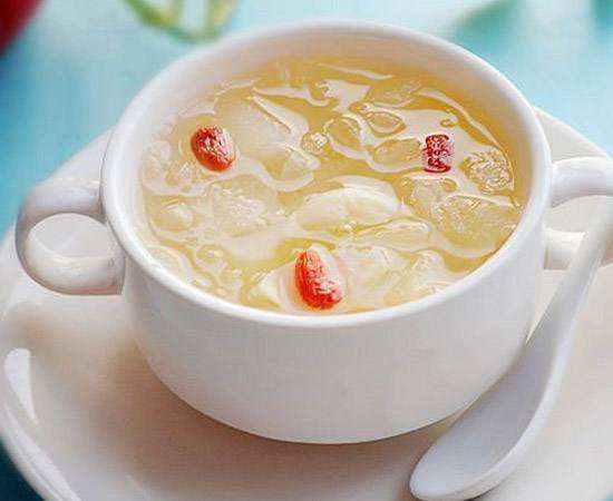 A soup made with lotus seed and lily bulb, a braised white fungus soup with pear and an agaric soup with sesame can all help to keep you hydrated and decrease internal heat during the hot period.
