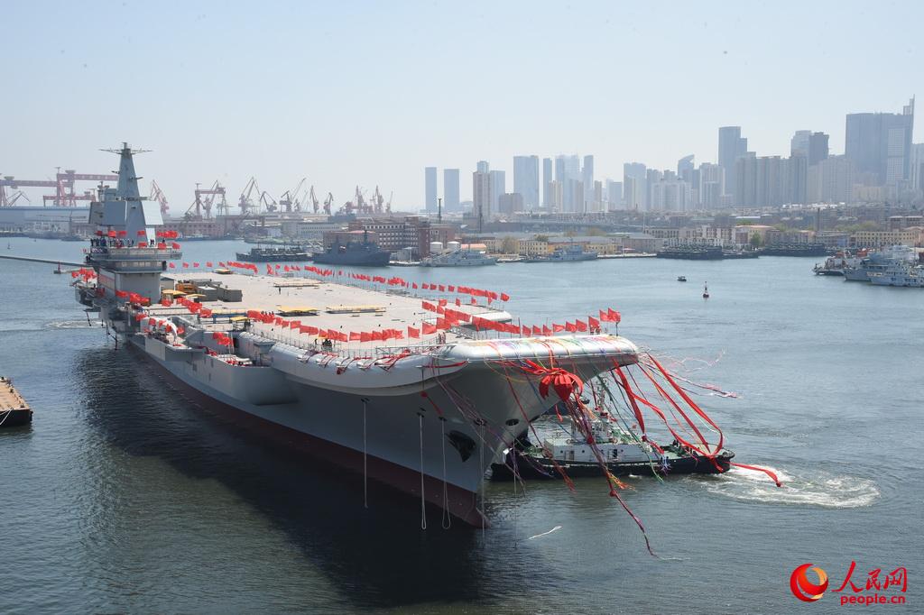 Videos and images published by Chinese media and weapons enthusiasts showed that the giant ship, which has yet to be officially named but is widely believed to bear the name CNS Shandong, left the port of Dalian Shipbuilding Industry, its builder, assisted by several tugboats.