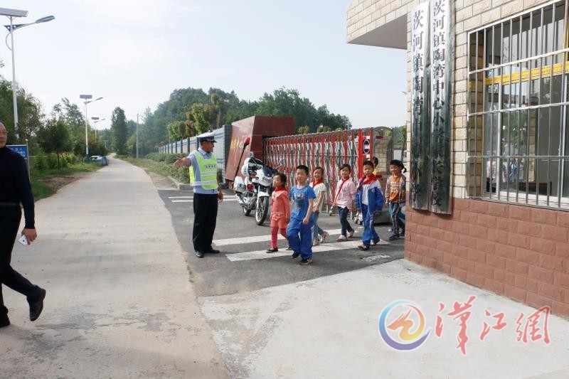 Shen Mingguo, the road chief of Taowan Village, Cihe Town, Gucheng County was on duty at the entrance to a school under his administration.
