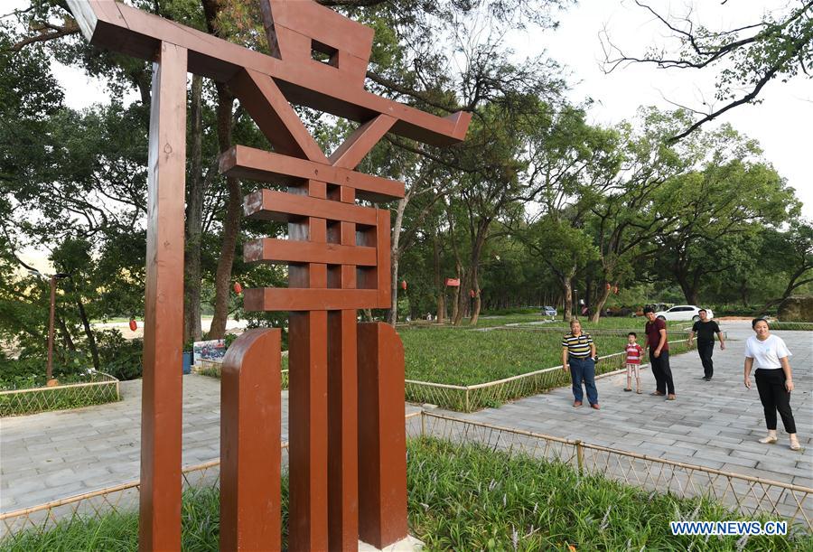 Tourists visit a park in Liancun Village in Fu'an City, southeast China's Fujian Province, Sept. 26, 2018. Liancun is an ancient village with many old buildings preserved well. (Xinhua/Lin Shanchuan)