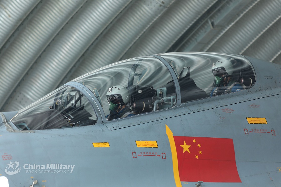 Pilots assigned to an aviation brigade of the air force under the PLA Southern Theater Command sitting in the cockpits of their fighter jet get ready for the flight training on Sept. 28, 2018. (eng.chinamil.com.cn/Photo by Tang Jun)