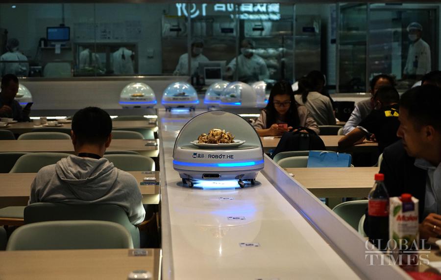 Robots use specialized runways to deliver food. (Photos: Yang Hui/GT)