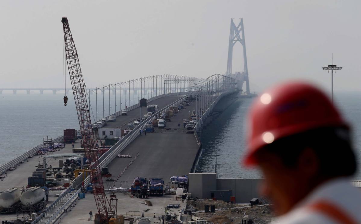 The bridge seen during construction in November 2017. [Photo by ROY LIU/CHINA DAILY]