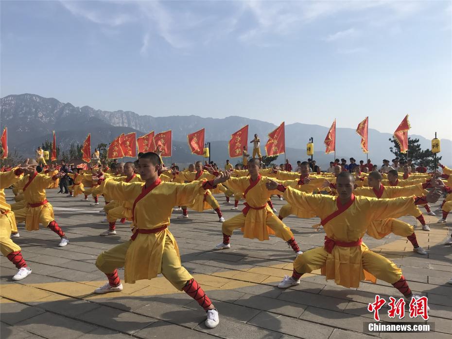 Kung fu students perform at the foot of Songshan Mountain, where the famous Shaolin Temple is located, said to be the birthplace of Shaolin kung fu. (Photo/Chinanews.com)