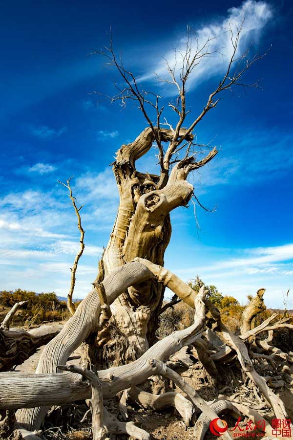 400 kilometers away from Urumqi, Xinjiang Uyghur Autonomous Region, just 30 kilometers north of Mingsha Mountain in Changji prefecture, lies the Changji Populus euphratica forest. The ancient tree has a history of 65 million years. The tree requires a robust resistance to drought, heavy winds, sand, and saline-alkali soil to stay alive in the harsh desert.