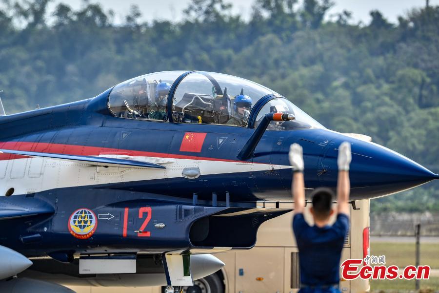 A fighter jet of the Chinese People's Liberation Army (PLA) Air Force's August 1st aerobatics team is seen at an airport in Zhuhai, South China’s Guangdong province, October 31, 2018. The team will perform at the 12th China International Aviation and Aerospace Exhibition (Airshow China). The event will be held in Zhuhai from Nov. 6 to 11. (Photo: China News Service/ Chen Jimin)