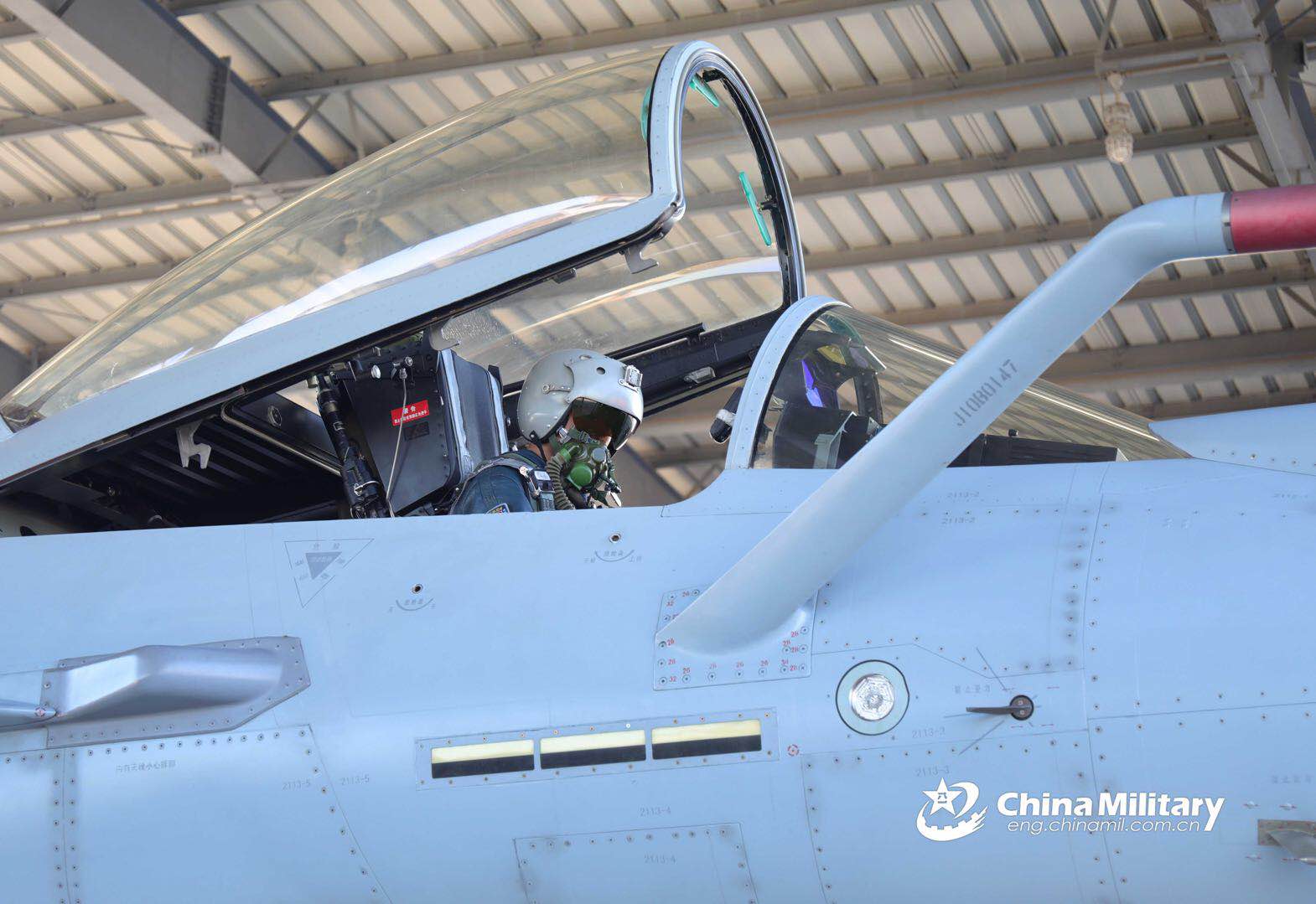 A pilot sitting in the cockpit of his J-10 fighter jet goes through pre-flight procedures prior to a live-fire flight training exercise on November 15, 2018. He is assigned to an aviation brigade with the PLA Air Force. (eng.chinamil.com.cn/Photo by Xue Xiaoling)