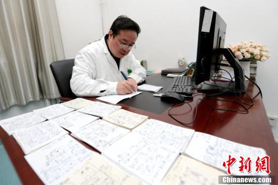 Dou Quanli draws a patient's lungs. (Photo/Zhang Yuan)