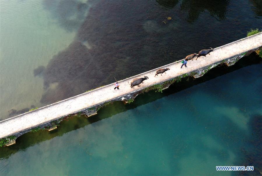 Aerial photo taken on Nov. 27, 2018 shows the scenery of E'quan Village under Xinjing Town in Jingxi, south China's Guangxi Zhuang Autonomous Region. (Xinhua/Zhou Hua)