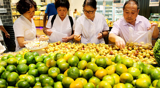 Shoppers select fruits at a supermarket in Lianyungang, Jiangsu province, Sept 10, 2018. [Photo/Xinhua]