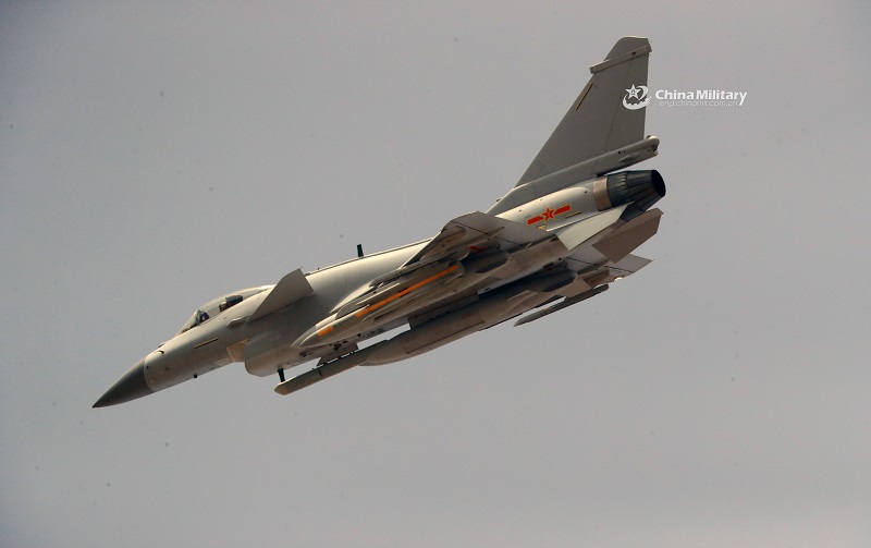 A J-10 fighter jet attached to an aviation brigade of the air force under the PLA Northern Theater Command dives to assault mock targets during a recent flight training exercise. (eng.chinamil.com.cn/Photo by Xue Xiaoling)