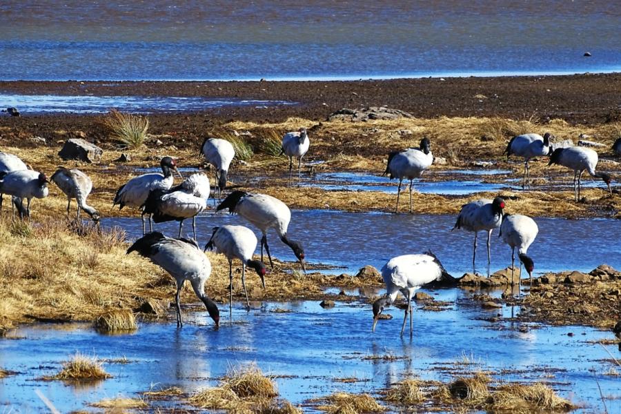 Black-necked cranes are seen at Dashanbao National Nature Reserve for Black-necked Cranes in Zhaotong city, Southwest China's Yunnan Province. (Photo by Zheng Yuanjian for chinadaily.com.cn)