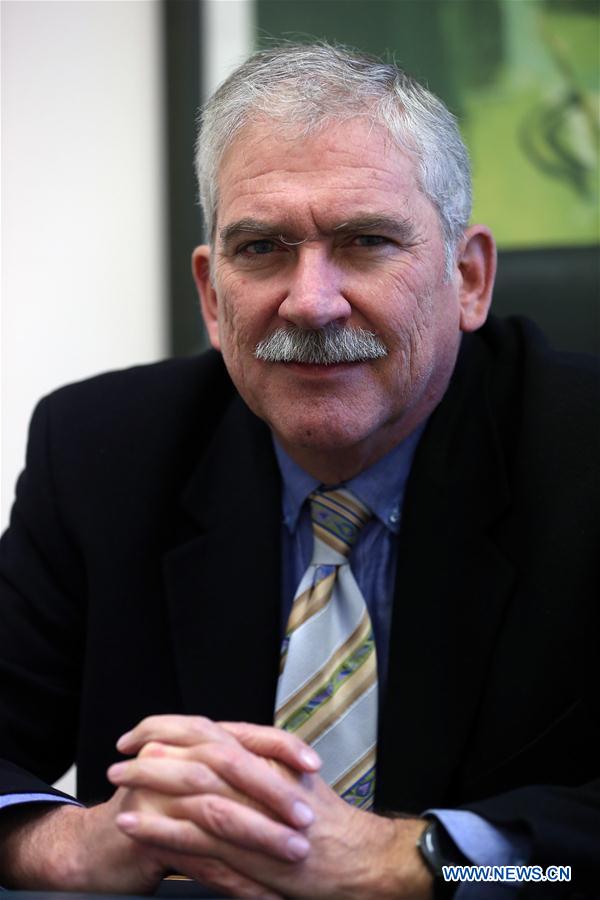 Harry Papasotiriou, a professor of international relations at Panteion University in Athens and director of the Institute of International Relations, poses for photos in Athens, Greece, Jan. 7, 2019. Harry Papasotiriou praised the efforts by the Chinese leadership to refocus the model of growth over the past five years. "It is good that China seeks a model which is less heavily dependent on exports and more on domestic demand," he said in a recent interview with Xinhua in Athens. (Xinhua/Marios Lolos)
