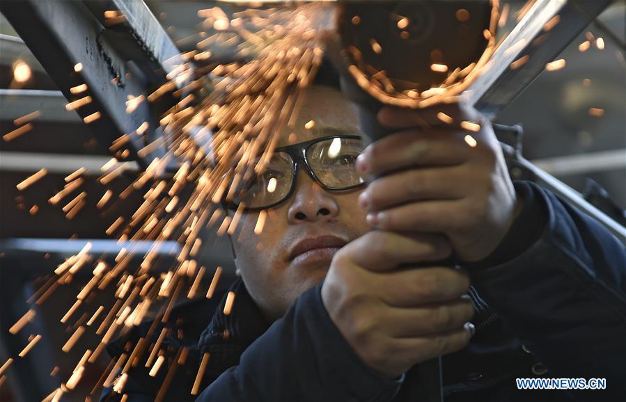 Zhu Yue works on building his "plane" in Kaiyuan, northeast China's Liaoning Province, Jan. 8, 2019. Zhu has an interest in plane since childhood. He began to build a full-size plane model of the Airbus 320 with his team members in 2017. Now Zhu is about to finish the building of the model. He plans to make it an experiencing attraction combining themed restaurant, wedding photography studio and flight simulating program. (Xinhua/Yao Jianfeng)