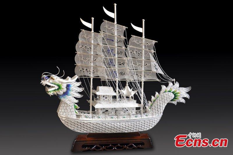 Crafts made using silver thread in Chengdu City, Southwest China's Sichuan Province. The craft dates back to the Song Dynasty (960-1279) and involves time-consuming, elaborate steps to pull a one-meter silver piece into a 1000-meter thin thread, which is then used to make all kinds of handmade works. In 2008, the craft was included as a national intangible cultural heritage. (Photo: China News Service/Zhong Xin)