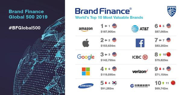The Industrial and Commercial Bank of China ranked as the world’s 8th most valuable brand, while Huawei, China’s leading global provider of information and communications technology infrastructure and smart devices, took 12th place. China Mobile, one of China’s major telecom firms, ranked 15th on the list.