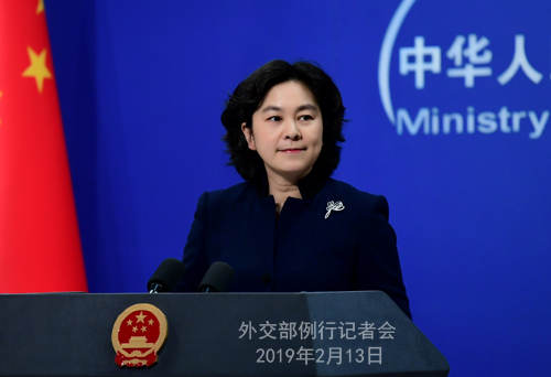 Foreign Ministry Spokesperson Hua Chunying holds a press conference in Beijing on Wednesday, February 13, 2019. [Photo: fmprc.gov.cn]