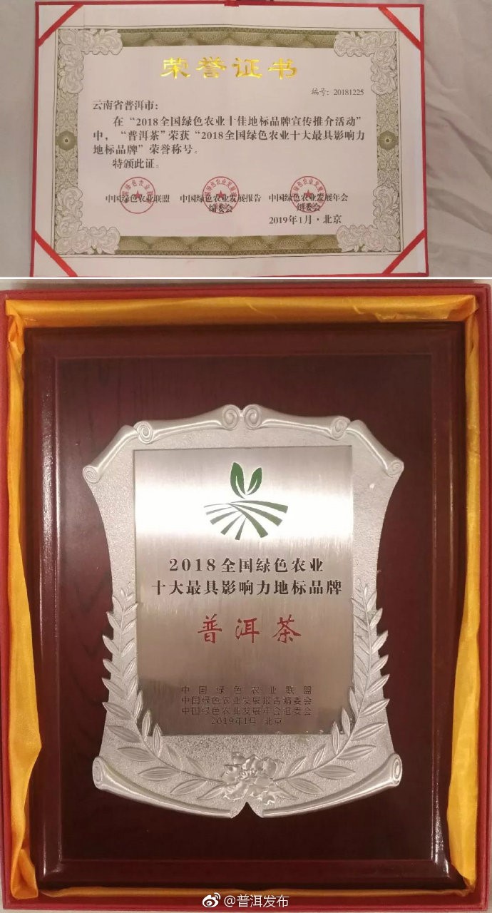 On January 19, the 2018 National Green Agriculture Top Ten Most Influential Landmark Brand Awarding Ceremony was held in Beijing. Pu'er City's “Pu'er Tea” had the honor to be on the list.