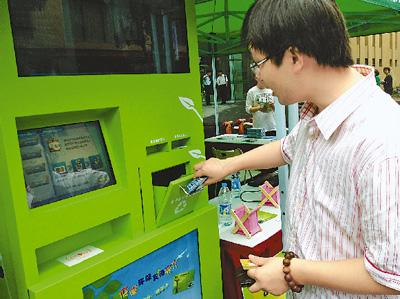 A local resident uses an intelligent waste bin in Shanghai. (Photo/People's Daily)