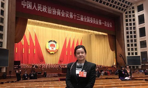 Xu Jingbo, head of the Japan bureau of the Asian News Agency, attended the first session of the 13th CPPCC National Committee in 2018. (Photo: Courtesy of Xu Jingbo)