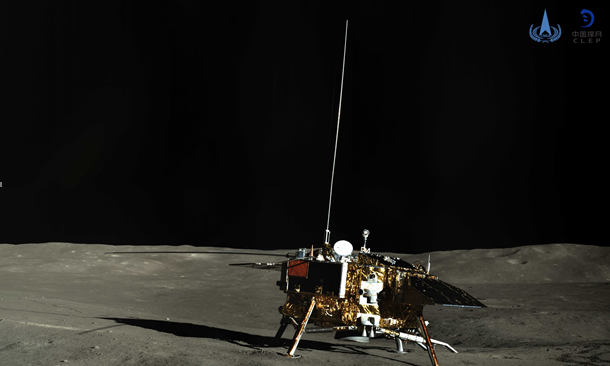 The color panoramic photo shows the lander of the Chang’e-4 probe. (published by Xinhua, photo by China National Space Administration)