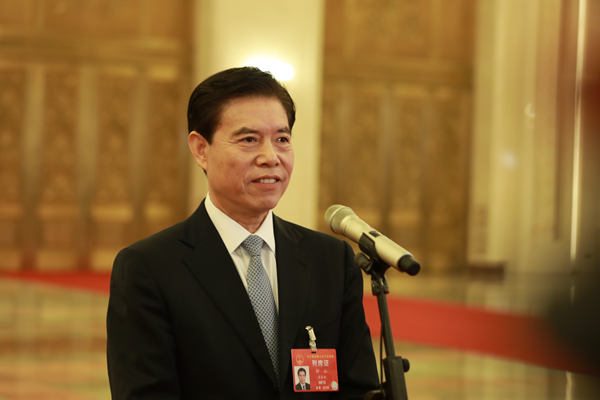 Chinese Commerce Minister Zhong Shan receives an interview, on March 5, 2019. (Photo: People's Daily app)