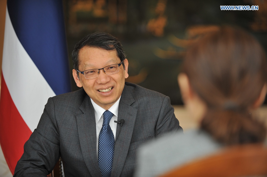 Thailand's ambassador to China Piriya Khempon accepts an interview with Xinhuanet in Beijing, captial of China, February 27. (Xinhuanet/ Xu Xin)