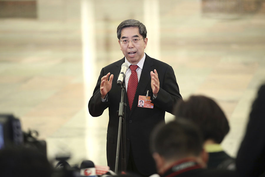 Ma Jiantang, Secretary of DRC Leading Party Members' Group, answers questions on March 8, 2019. [Photo/Xinhua]