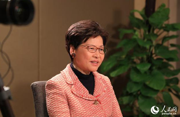 Carrie Lam Cheng Yuet-ngor, Chief Executive of the Hong Kong Special Administrative Region, gives an exclusive interview to People’s Daily Online on March 4, 2019. (Photo by Jia Wenting from People’s Daily)