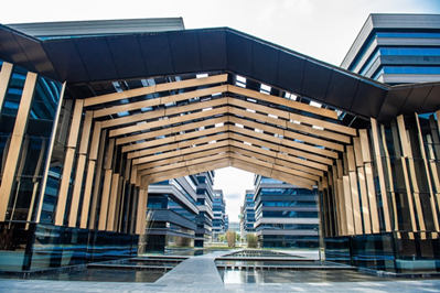 The photo shows the exterior of Hongqiao Import Commodity Exhibition and Trading Center. (Photo provided by the Administration Committee of Shanghai Hongqiao Central Business District)