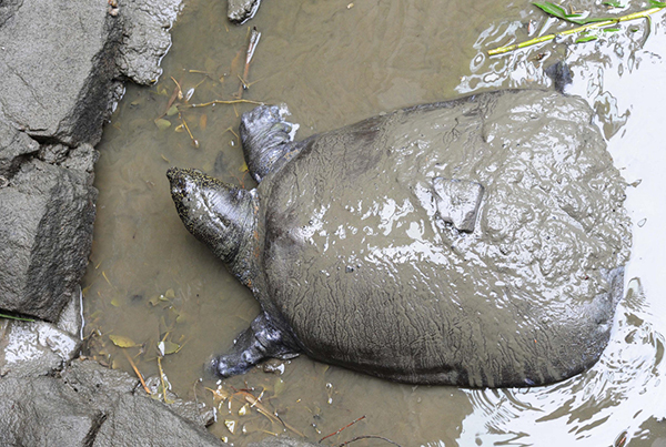 The only female Yangtze giant softshell turtle in China as seen in 2015. It died on Saturday. [Wang Jianzhong/For CHINADAILY]
