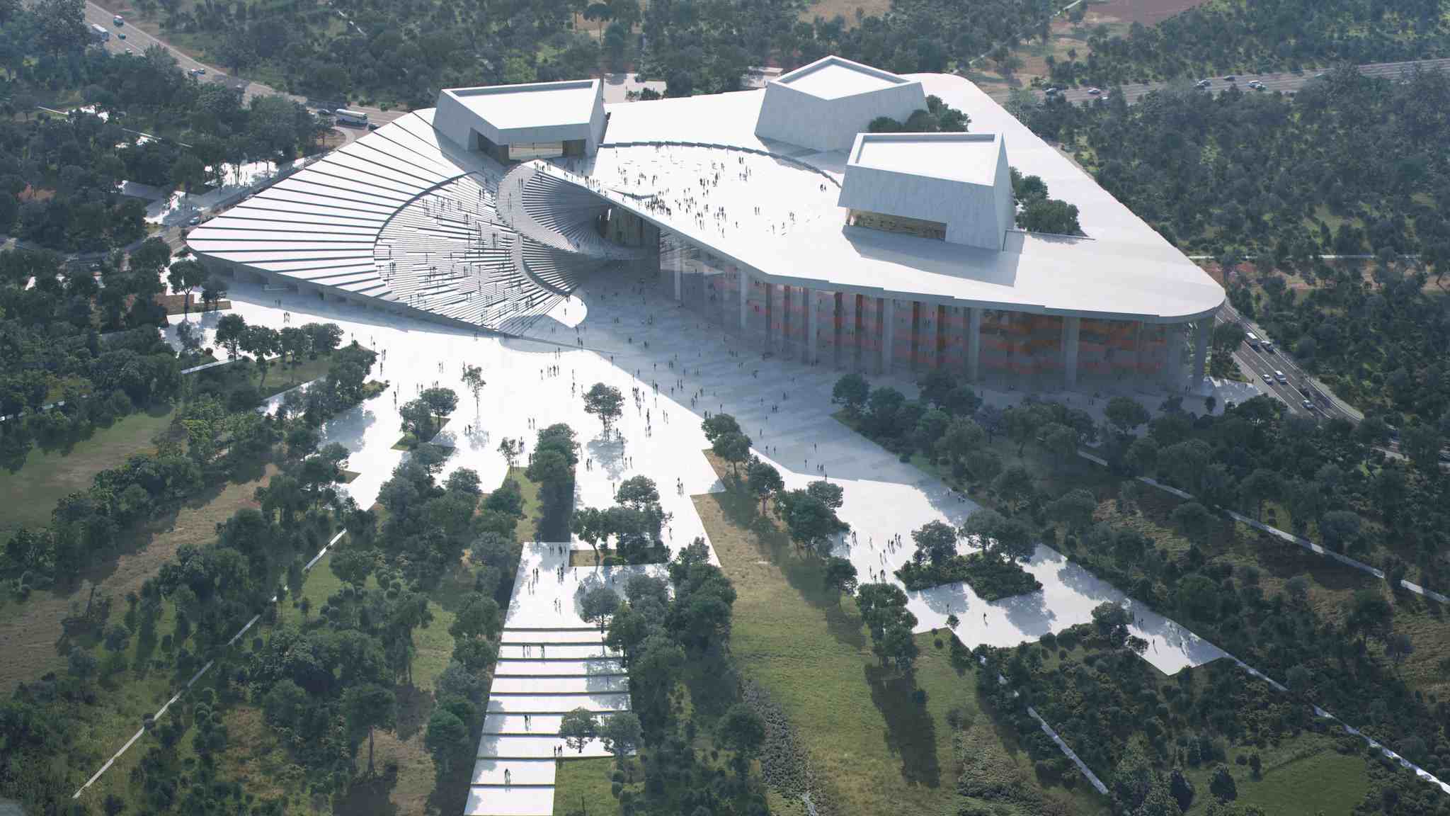 The opera house is designed with three auditoriums with 2,000 seats, 1,200 seats and 1,000 seats, respectively. The roof can be used for large outdoor shows.