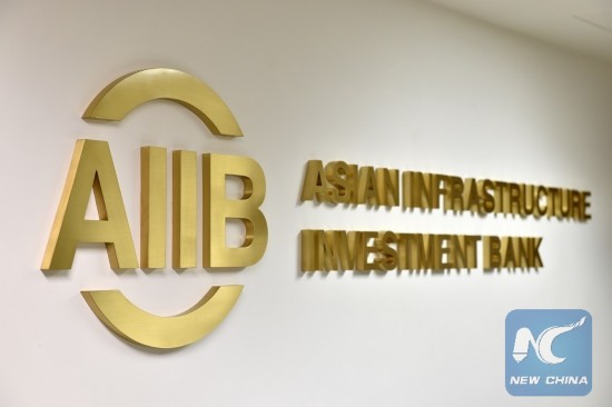 Photo taken on Dec. 21, 2015 shows the sign of the Asian Infrastructure Investment Bank (AIIB) in Beijing, capital of China. (Xinhua/Li Xin)