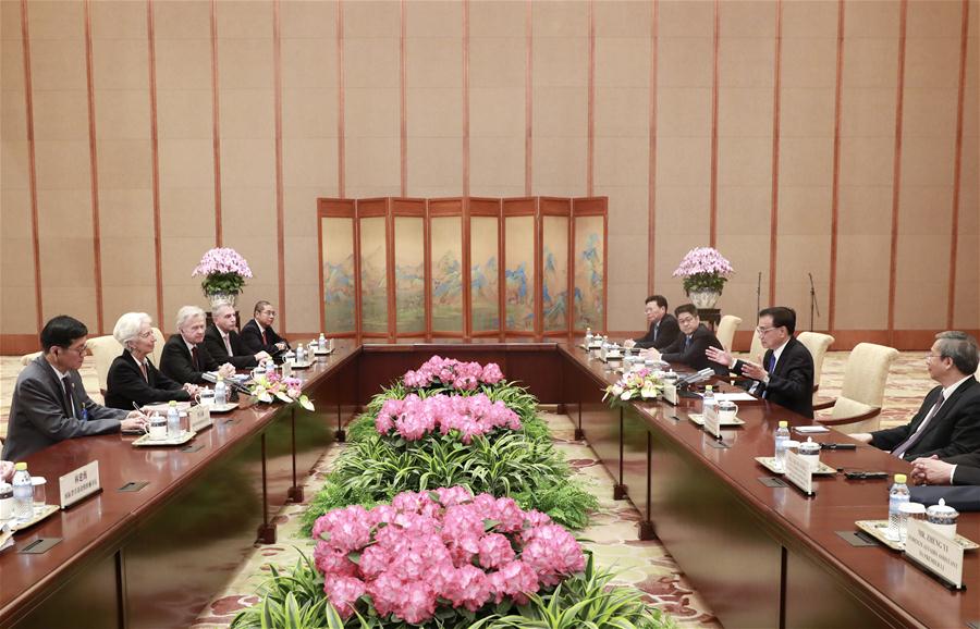 Chinese Premier Li Keqiang meets with International Monetary Fund (IMF) Managing Director Christine Lagarde ahead of the Second Belt and Road Forum for International Cooperation in Beijing, capital of China, April 24, 2019. (Xinhua/Pang Xinglei)