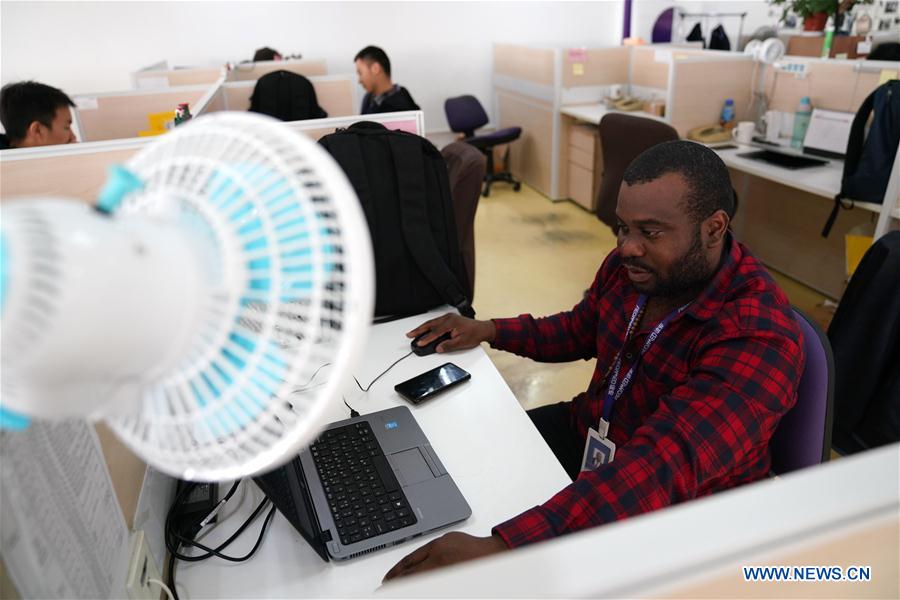 Jesus Angel, a foreign student from Equatorial Guinea, works in the office of Beijing AeonMed Co., Ltd. where he has an internship in Beijing, capital of China, April 4, 2019. He came to China in 2013 and is a student of Beijing International Studies University. He became the intern sales manager of AeonMed in 2018 and participated in the sales work for Latin America. He is now applying for new scholarship to stay in China to study business management. With the proposal of Belt and Road Initiative, an increasing number of foreigners come to China to meet China and introduce China to the world. They are the link of the trade and cultural exchange of China and foreign countries. (Xinhua/Ju Huanzong)
