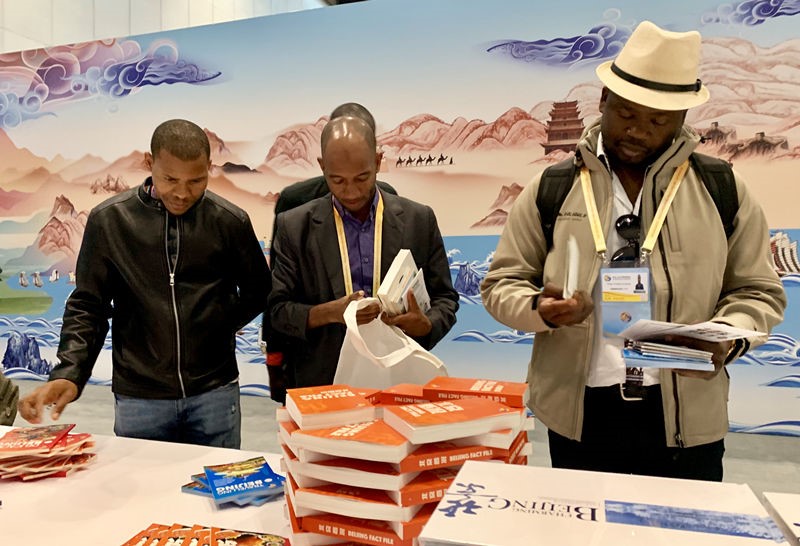 Foreign journalists leaf through materials at the media center of the second Belt and Road Forum for International Cooperation, April 23, 2019. (Photo/Han Xiaoming, People’s Daily)