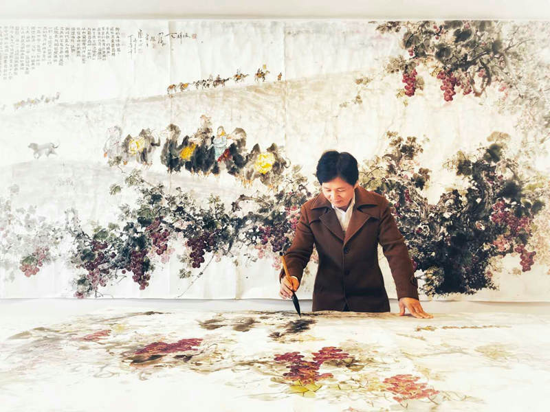 Lu paints one of his masterpieces with a brush.