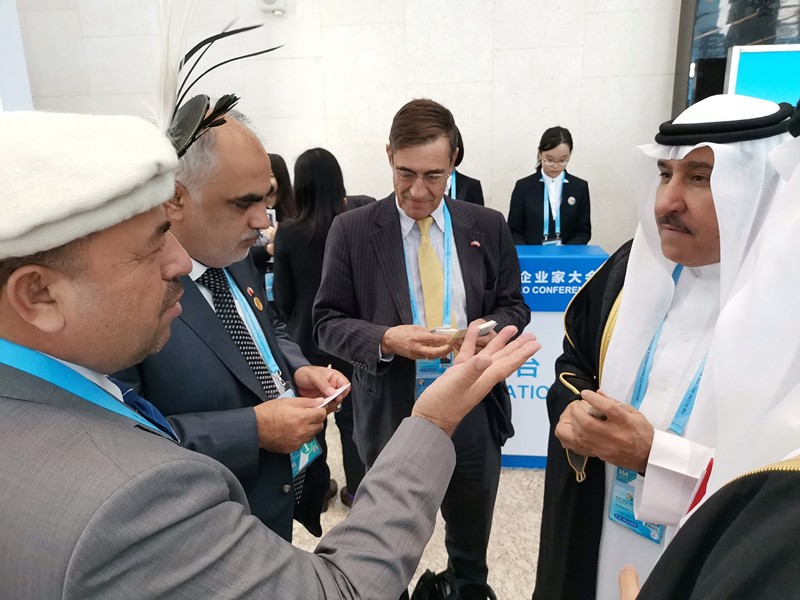 Entrepreneurs have business negotiations at the Belt and Road CEO Conference during the 2nd BRF. Photo by Meng Xianglin, People’s Daily