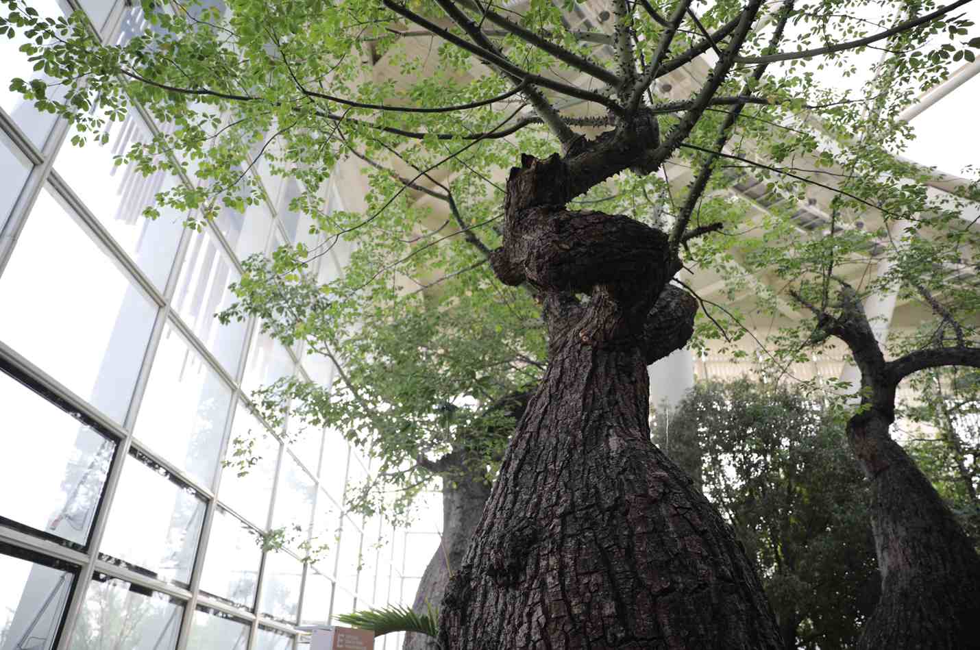 Photo taken on April 29, 2019 shows a white silk floss tree at the Botanic Garden for Beijing International Horticultural Exhibition 2019. Its thick trunk stores plenty of water, looking like the belly of Maitreya Buddha. (People's Daily Online/Xian Jiangnan)