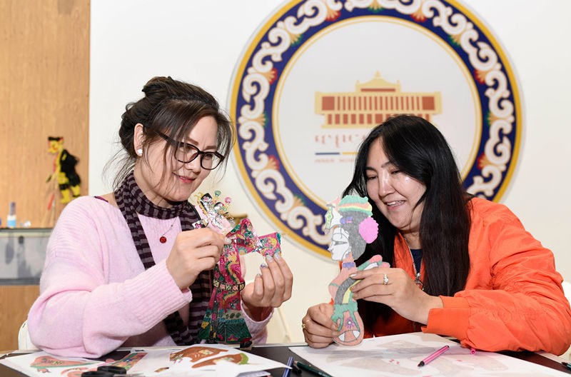 Two international students from the International Exchange College of Inner Mongolia Normal University make shadow puppets at the Inner Mongolia Exhibition Museum in Hohhot, capital of north China’s Inner Mongolia Autonomous Region, April 25, 2019. A total of 32 international students from Mongolia, Russia, Tajikistan, Laos, Cambodia, Pakistan and other countries participated in this cultural activity.
