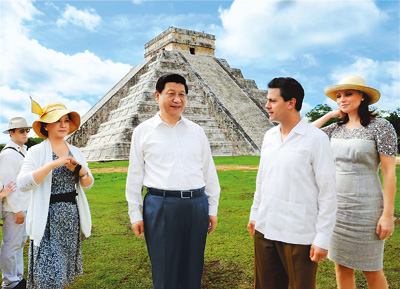 On June 6, 2013, President Xi Jinping visited the ancient Mayan ruins of Chichen Itza at the invitation of President Enrique Pena Nieto. It was a journey to promote cultural exchange between the two ancient civilizations of China and Mexico.